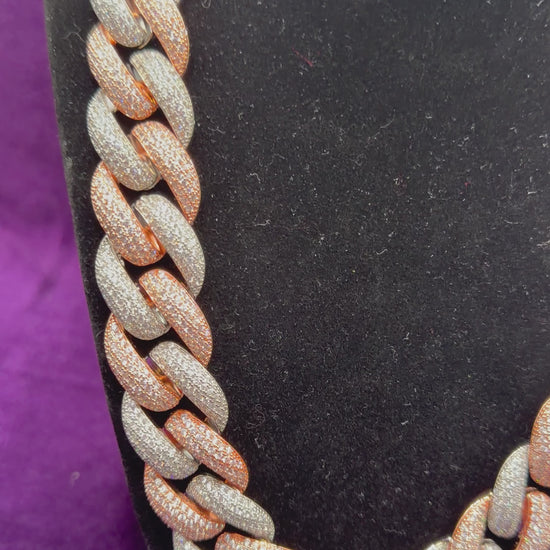 2 Tone Rose Gold Iced Out Cuban Link Chain