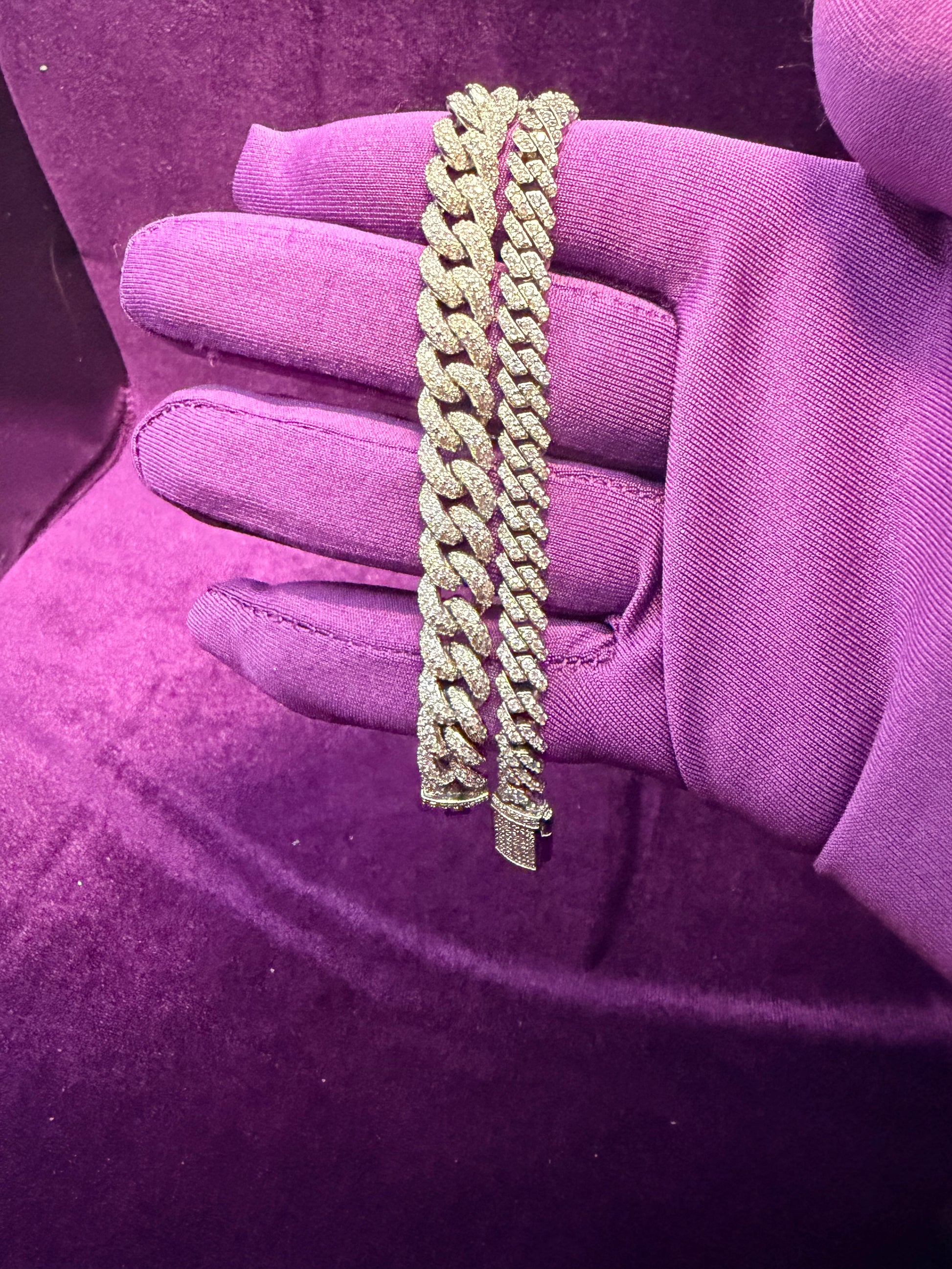 Silver Iced Out 8-6mm Cuban Link Bracelet Set